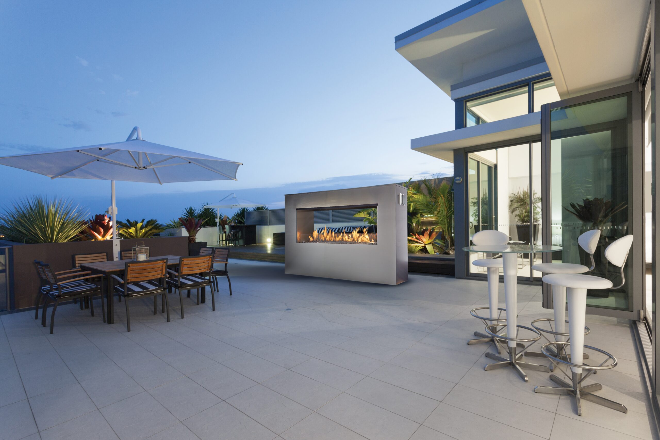 Enchant your senses and fill your outdoor space with the stunning flames of the 6424 Linear Outdoor Gas Fireplace.