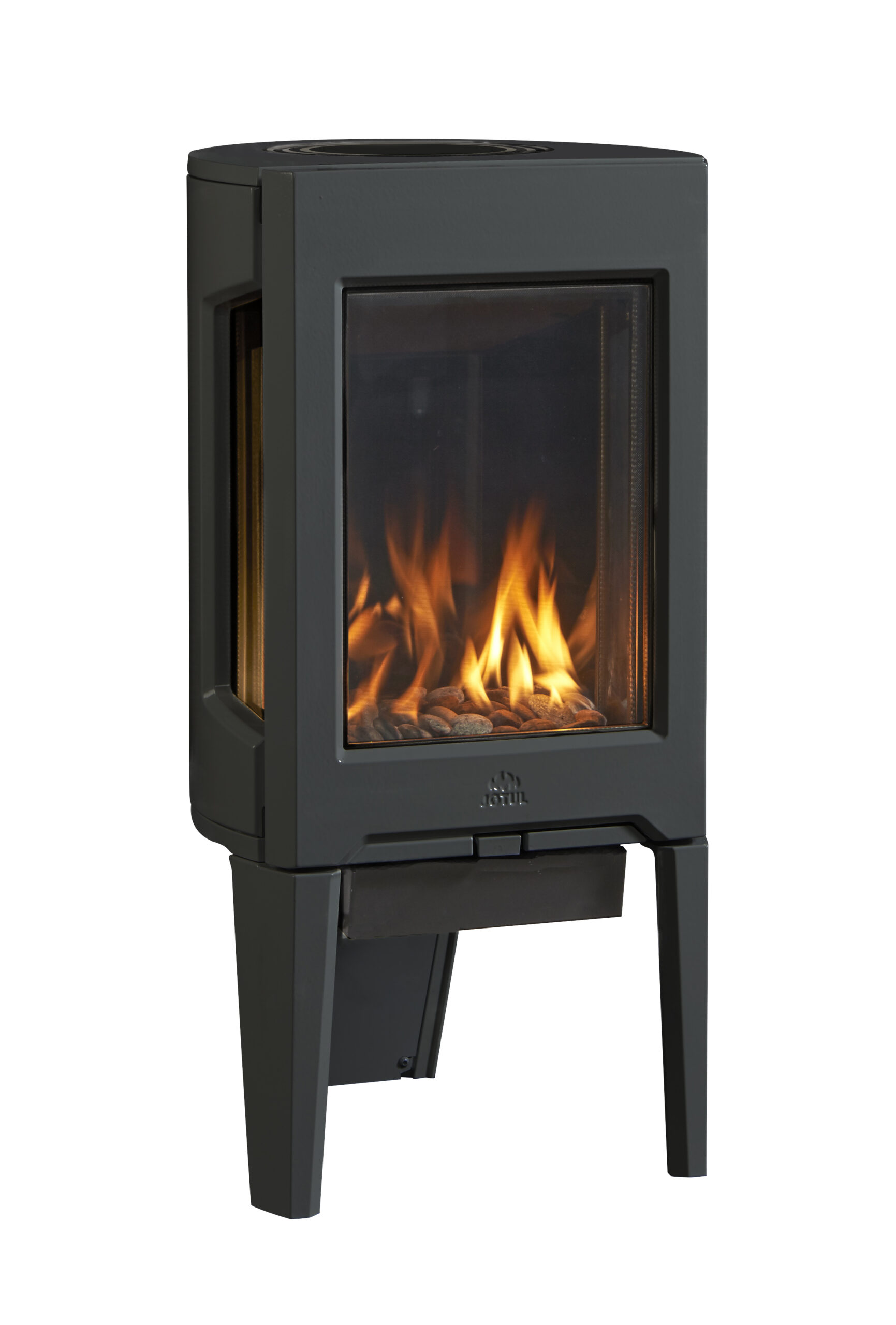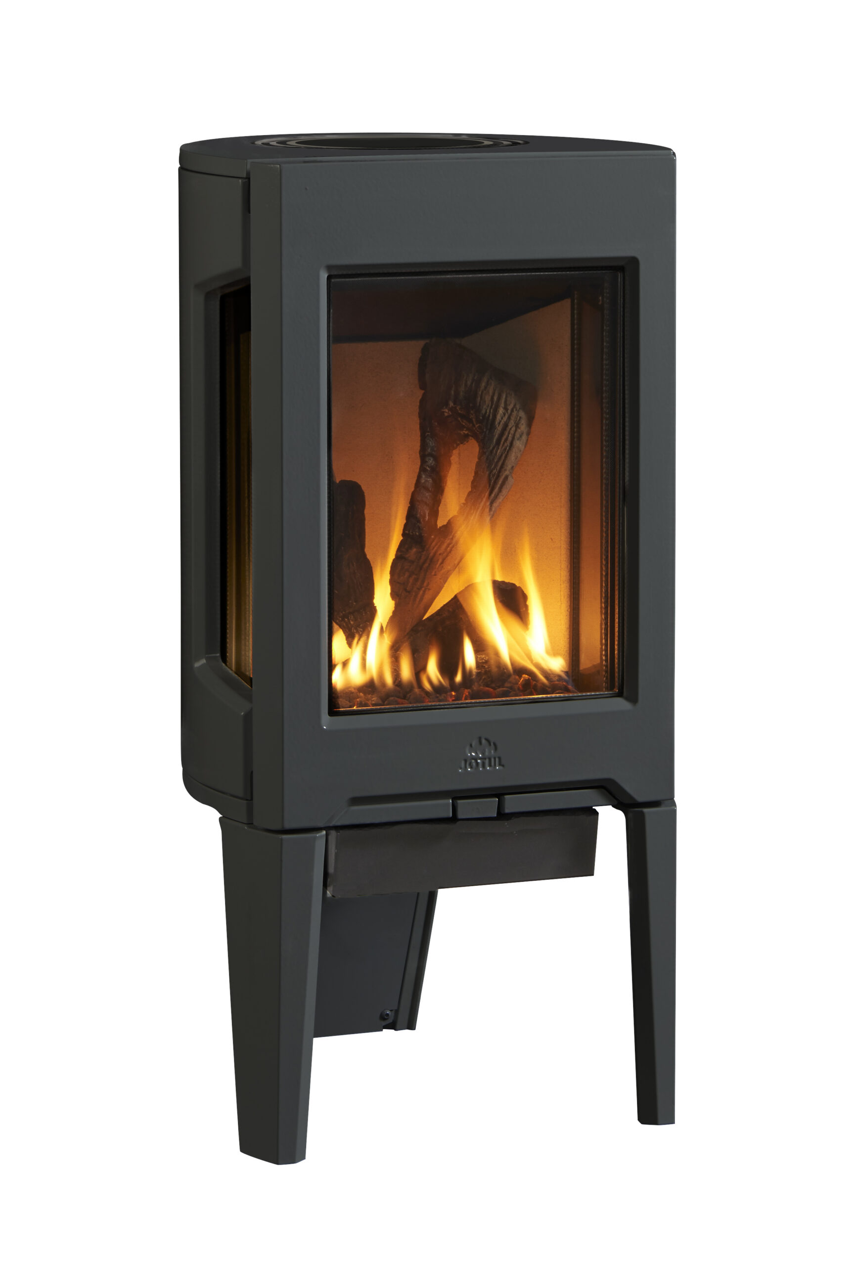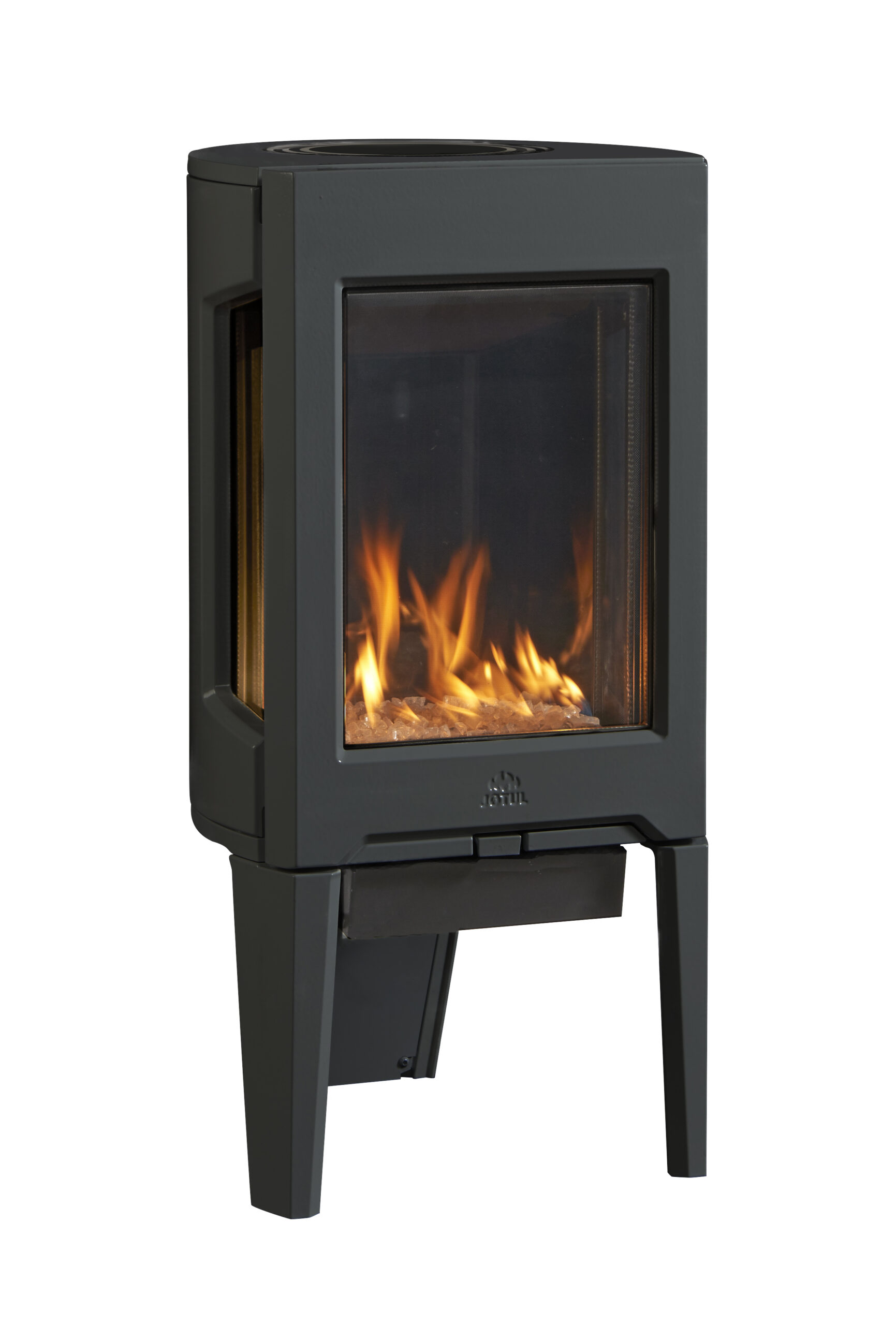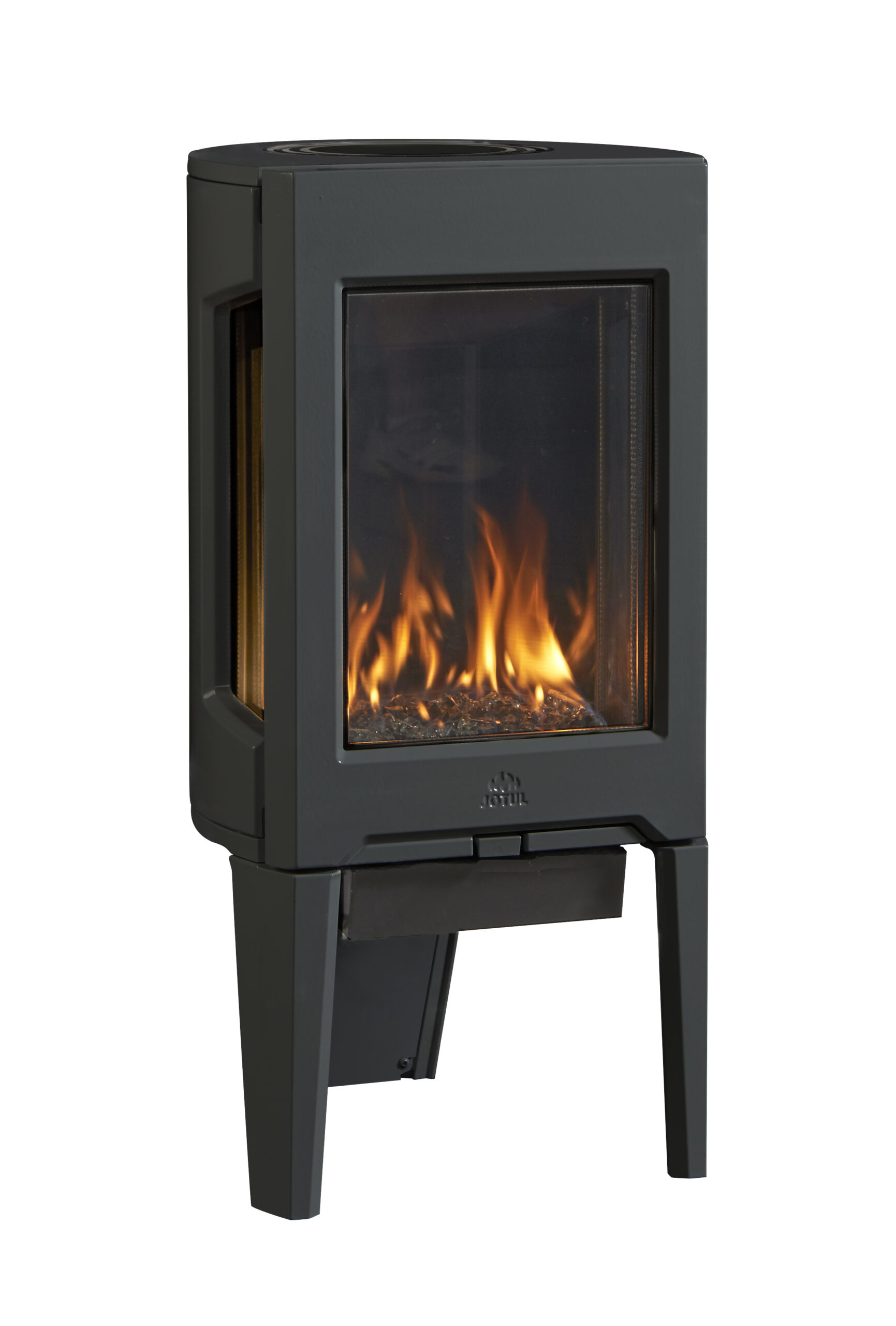 The elegant three-sided glass design of our new Jøtul GF 160 DV gas stove will give you an excellent view of the fire from any angle. The Jøtul GF 160 DV is the perfect heater for those dark and stormy nights. Choice of required media includes Traditional Logs, Beach Fire, River Rocks, Tumbled Stones, Black Glass, and White Starfire Glass. This unit comes in two configurations, a more conventional mV pilot system and a modern electronic ignition IPI pilot system.